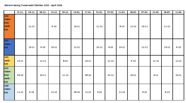 TRAININGSZEITEN & genereller Platzbelegungsplan